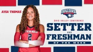 Congratulations to Asya Thomas, who’s been named the Ohio Valley Conference Setter AND Freshman of the Week after an incredible performance in USI’s sweep of Eastern Illinois! Thomas racked up 70 assists, 20 digs and 5 kills over the weekend.